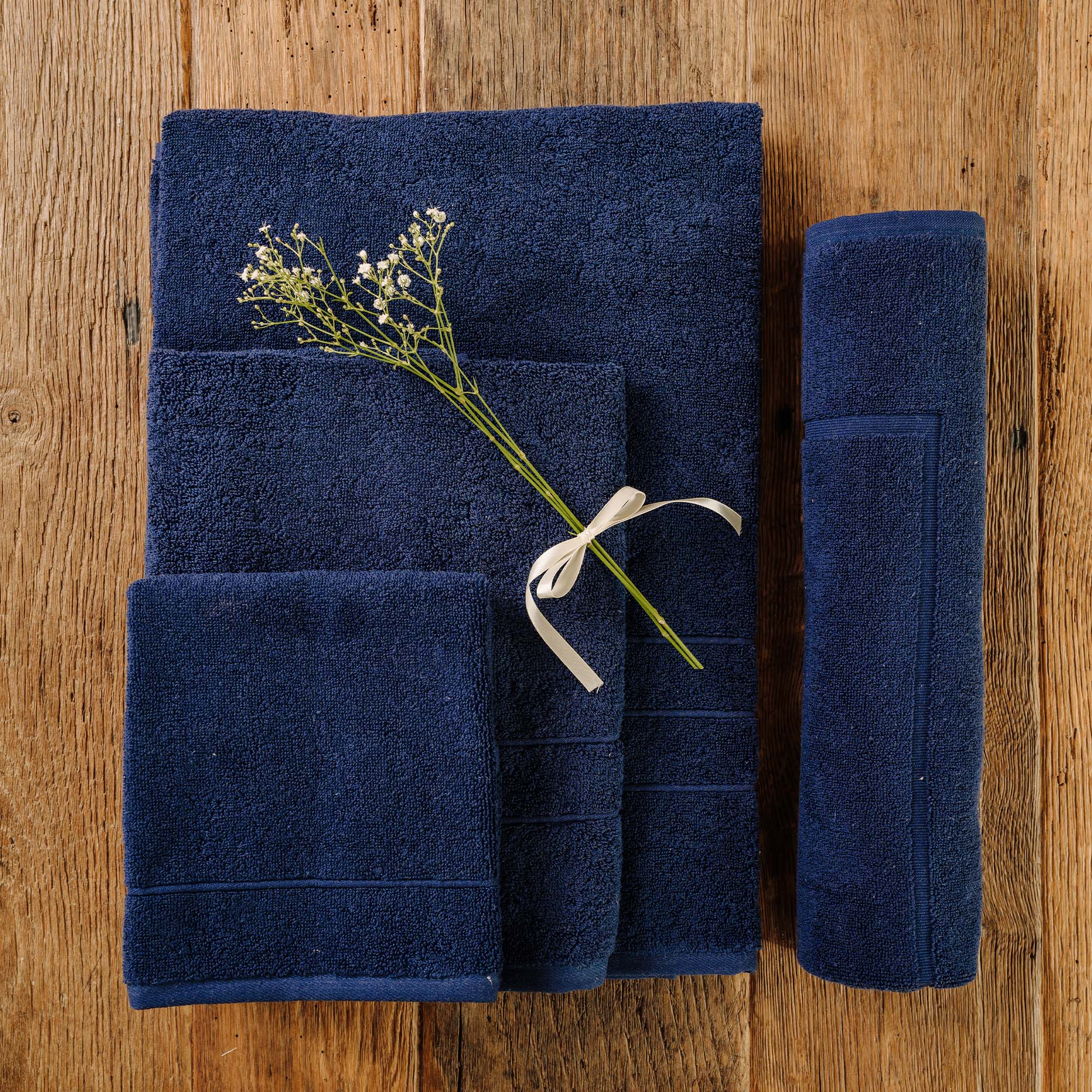 - Includes: 1 face towel (60x100 cm) + 1 hand towel (40x60 cm) + 1 bath towel (100x150 cm) + bath mat (60x100 cm)